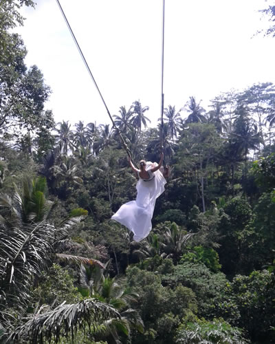 New Bali adventure activity to do swing in high above the trees near Ubud Village. Get thrilling feelings, adrenaline rush, unforgettable experiences and unique pictures. Imagine swinging and gliding on various spots over lush green garden, rice fields, river valley jungle, and awesome cliff view. Available tandem swing and single swing.
